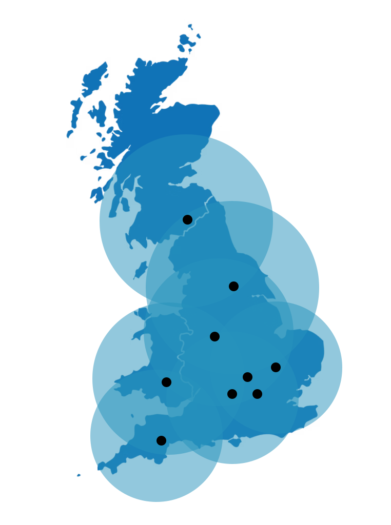 We support clients across the UK and have operations in London, Buckingham, Exeter, Silsoe, Oxford, Yorkshire, Wales and Scotland, allowing us to cover most of Britain.